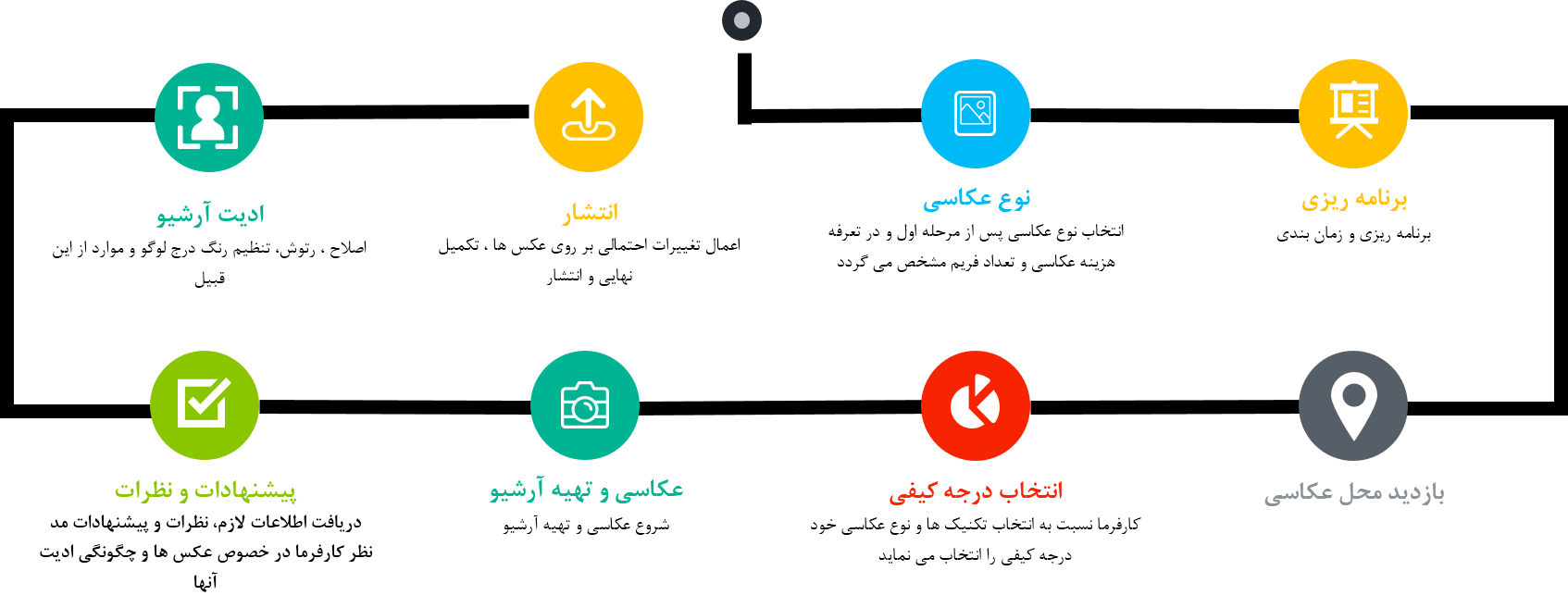 قبل از شروع کار در مرحله اول : برگزای جلسه اتاق فکر (مذاکره و مشاوره ،آموزش های لازمه و… ) جهت انتخاب نوع عکاسی متناسب با نظرات ،پیشنهادات و کار و شرایط کارفرما