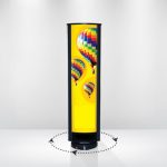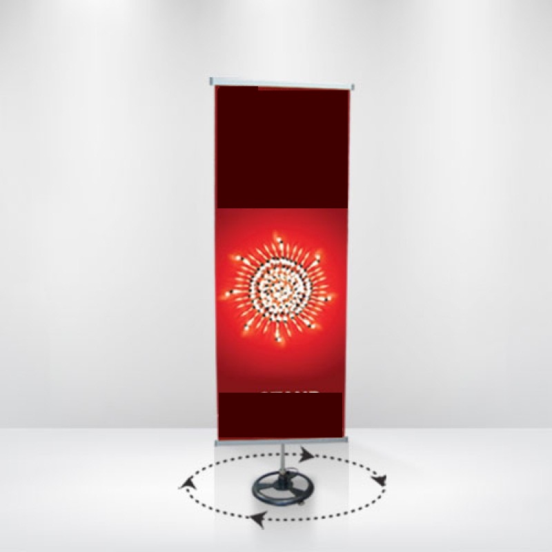 در این استند، متریال چاپ شده، به دور مغزی استوانه ای پیچیده می شود، لذا در زمان حمل، متریال چاپ شده توسط بدنه سازه احاطه شده و محفوظ می ماند